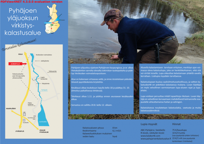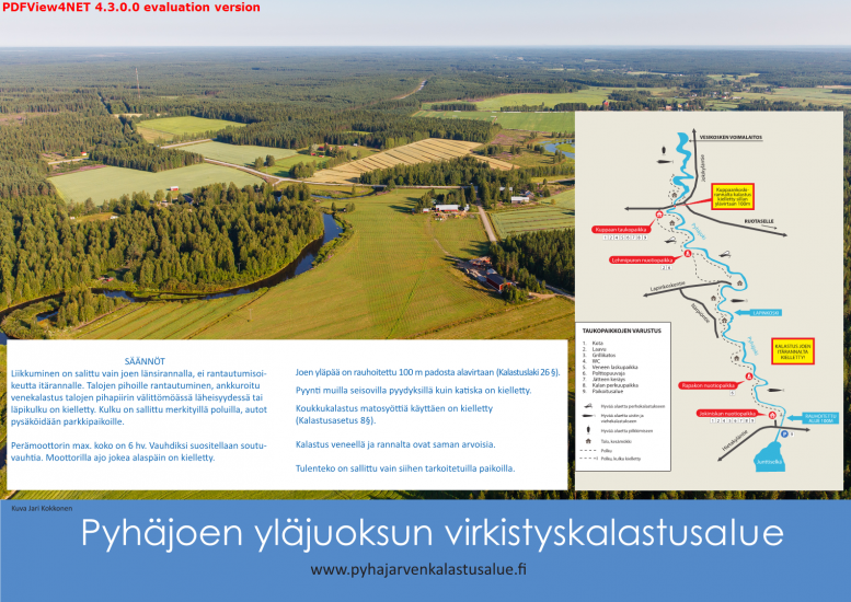 Erillinen Pyhäjoen yläosan virkistysalue (n. 8km) tarjoaa elämyksiä virvelöintiin, uisteluun ja perhoiluun